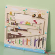 ¡Bienvenido a una era de lava, dinosaurios y mucha acción educativa! Este tablero magnético de madera transforma el aprendizaje en una expedición jurásica. Los pequeños paleontólogos deben guiar bolitas de colores usando una varita magnética, mientras recorren cráteres en erupción, alimentan dinosaurios y clasifican elementos en un mundo lleno de misterio y color.
