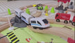 Este increíble set de trenes cuenta con 104 piezas, incluyendo rieles de madera que puedes armar en múltiples formas, un tren eléctrico que se desplaza solo, grúas, puentes, señales, árboles, camiones de carga y figuras de construcción.