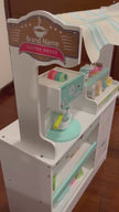 🍦 Mostrador con helados, cupcakes y macarons de madera.